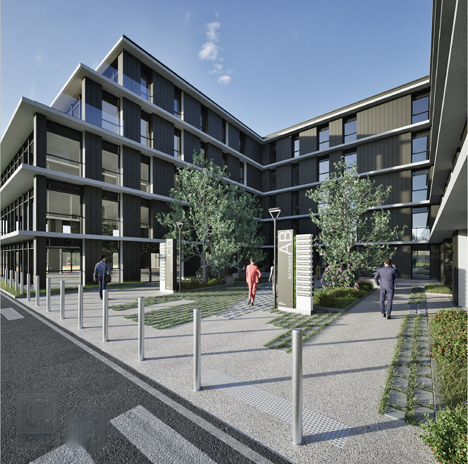 Cet immeuble à haute performance énergétique se compose de 2 tranches (1 et 2) regroupant plus de 7300m² de surface de bureaux.